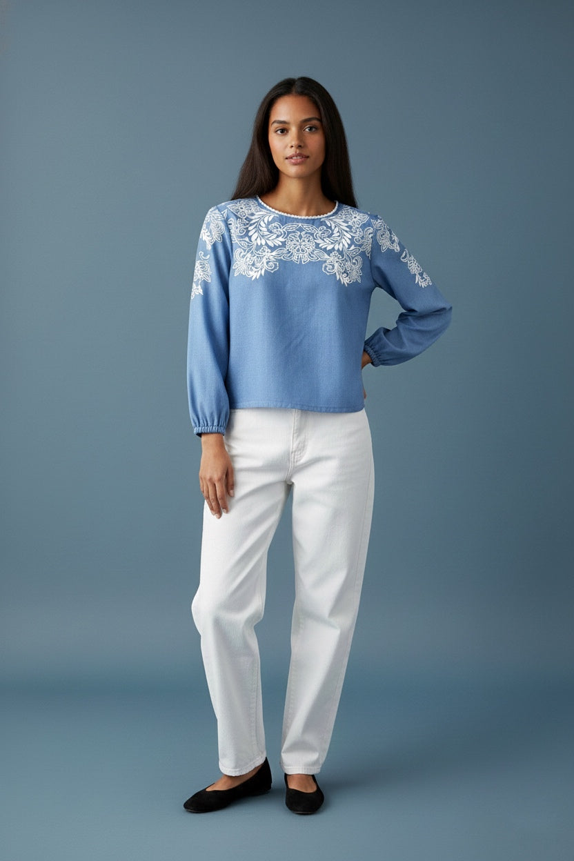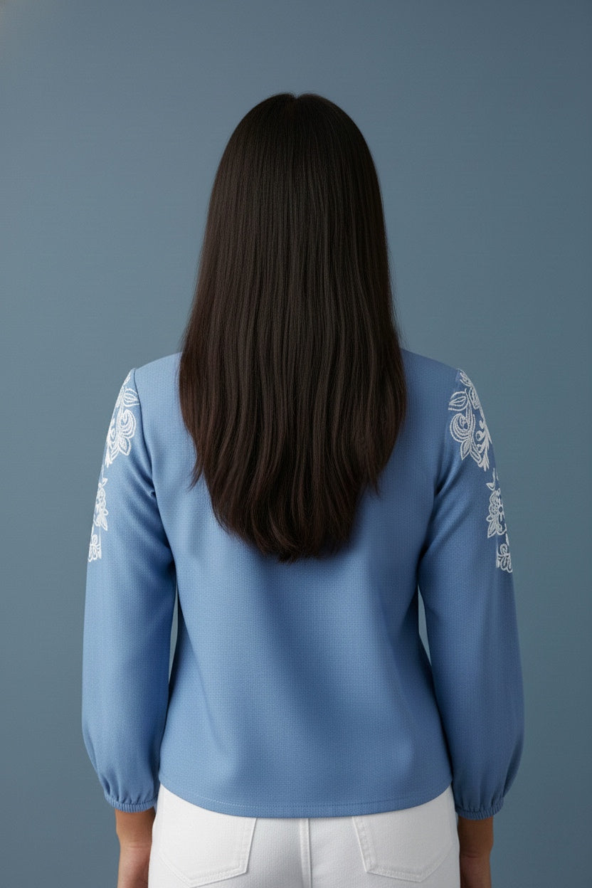 Soft fancy cotton top with an elegant printed design. Comfortable, breathable, and ideal for everyday wear with a refined look.
